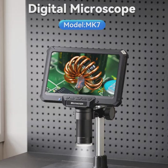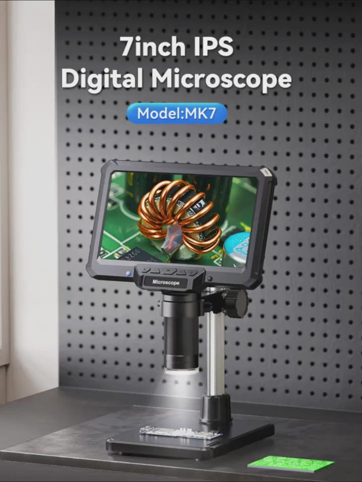 7-Inch Digital Microscope, 1200X Magnification, 16MP HD Video, USB Rechargeable, Adjustable Magnification, Portable Design for Coins, PCB, Adults, PC View, Laboratory, Quality Control, Industrial Use, Sleek Microscope, Highresolution Optics