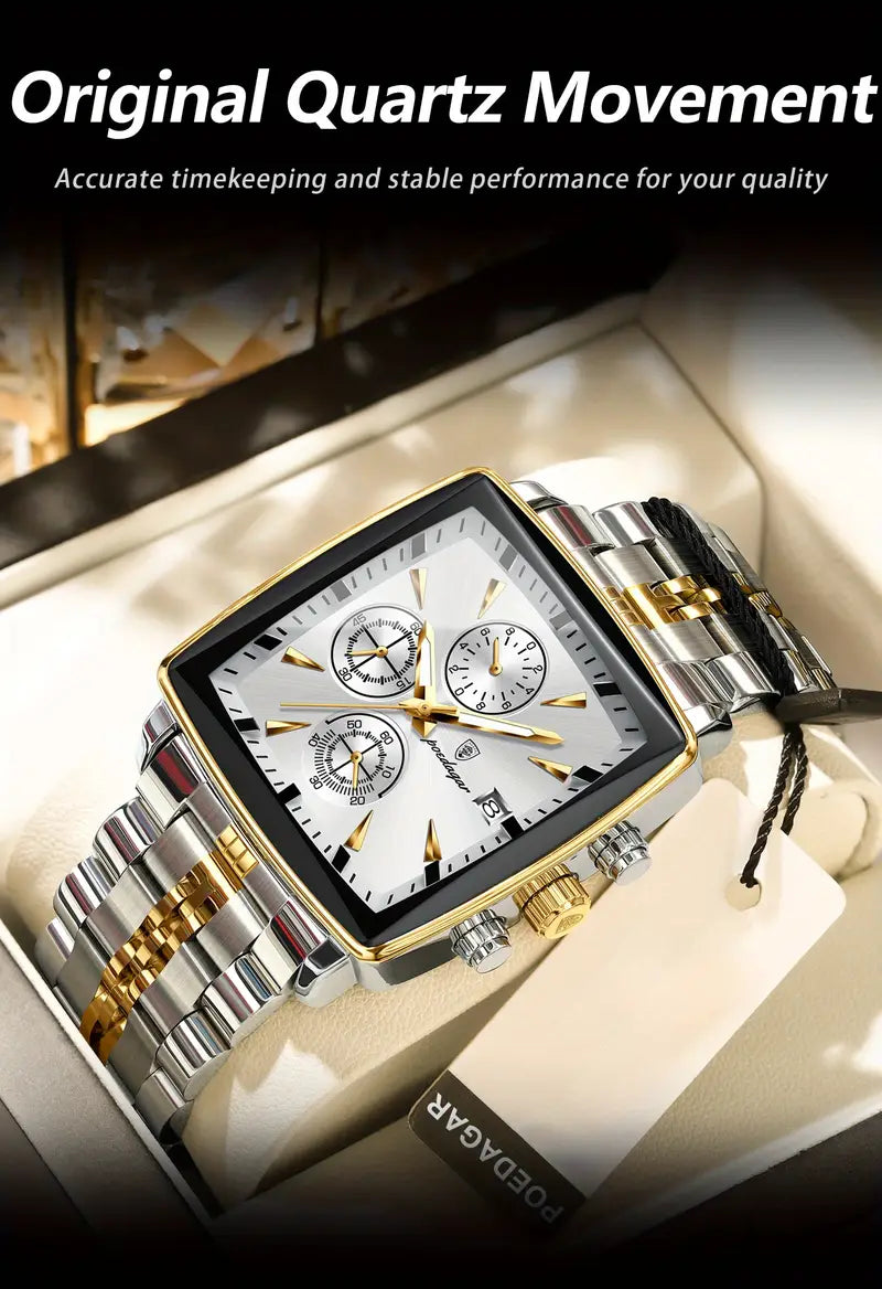 Casual Sports Watch, Stainless Steel Quartz Movet, 3ATM Water Resistant, Luminous Hands, Chronograph, Zinc Alloy Case, Battery Powered with Non-Rechargeable Button Battery