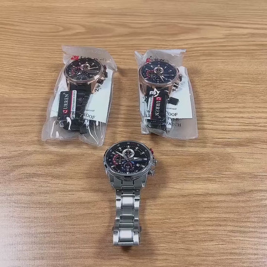 CURREN 'S Luxury Stainless Steel Business Watch with Luminous Hands, Date Display, And Multi-Function Timer - Black Dial, Red Accents, Quartz Movet, Battery-Powered, Stylish for Outdoor Parties, Party Accessory, Sophisticated Design, Durable Watch