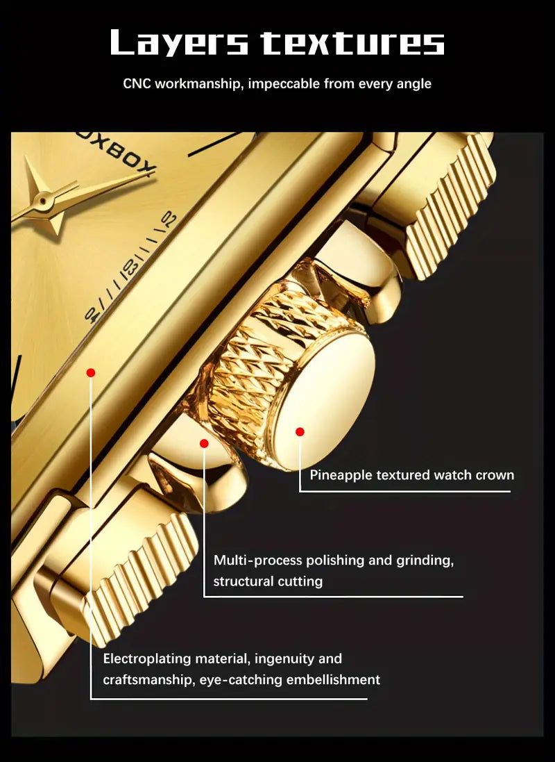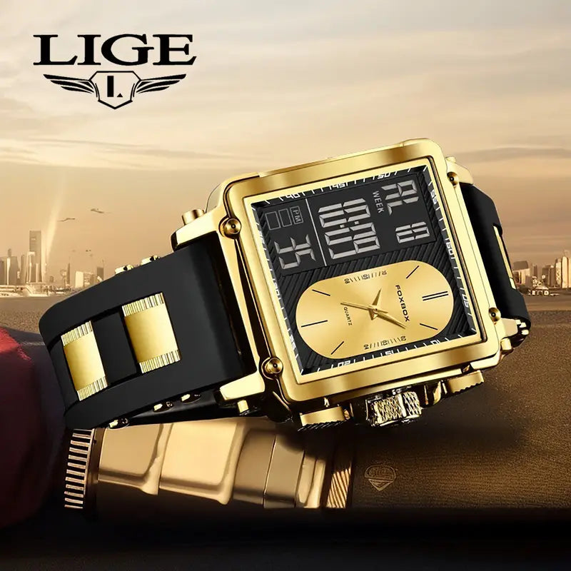 FOXBOX Brand Ladies Electronic Watch, Square Dual Screen, Multifunctional, Sports, Chronograph, Alarm Clock, Luminous, Fashion, Zinc Alloy Case, Silicone Band, Digital Movement, with Button Battery (Diameter<20mm), Non-rechargeable