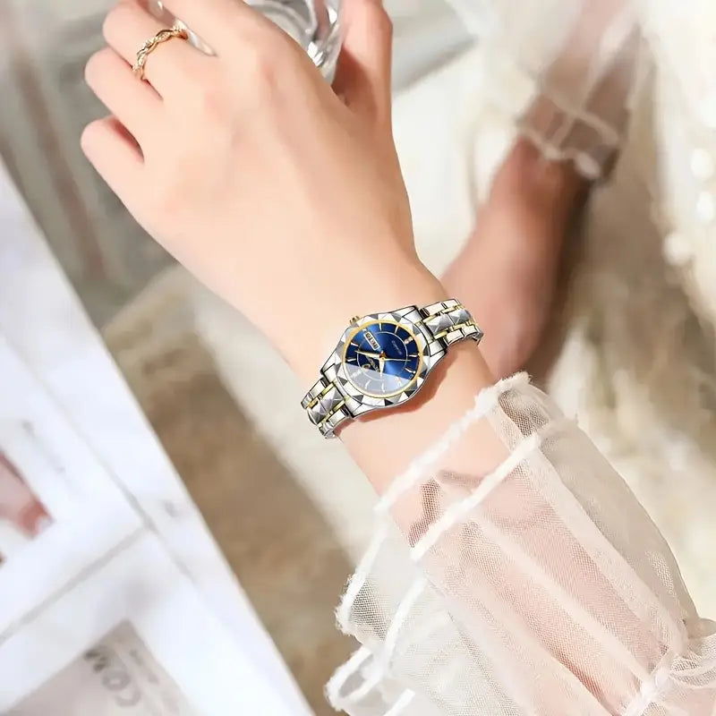 Ladies Quartz Watch, Round Casual Style, Luminous Analog Display, Stainless Steel Band, Alloy Case,, with Non-rechargeable Button Battery, BINBOND Brand