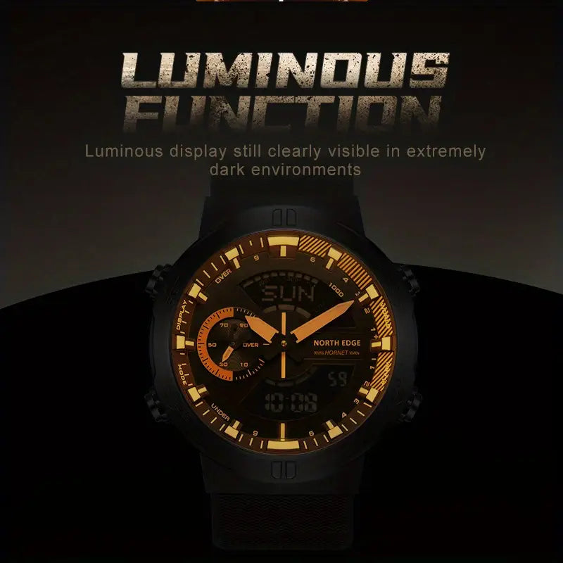 NORTH EDGE HORNET Men's Sports Watch - Black Digital Display with World Time, Speed Tracker, Stopwatch, Countdown Timer, Illumination & Water Resistance for Running, Cycling & Outdoor Activities, Cycling Wristwatch